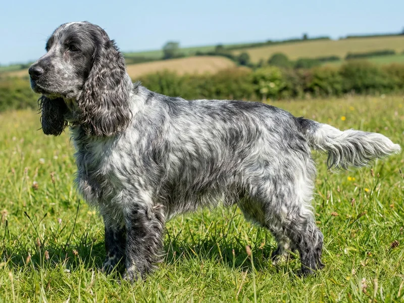 La robe du Cocker Anglais offre une palette remarquable de couleurs : unies comme le noir profond, le rouge flamboyant, le fauve doré ou le chocolat velouté, ou encore bicolores et tricolores associant le blanc au noir, à l'orange, au marron ou au citron. Les robes rouanées, mouchetées de façon caractéristique, ajoutent une touche distinctive à certains individus. Son crâne légèrement bombé, son museau carré de longueur moyenne et ses yeux en amande brun foncé lui donnent cette expression douce et intelligente qui fait fondre les cœurs.